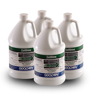 El limpiador de serpentines CoilShine de la marca Goodway es no-ácido, biodegradable y diseñado para penetrar y desengrasar hasta los serpentines más sucios, asegurando un ambiente más saludable para todos y manteniendo sus sistemas funcionando al máximo de su capacidad, evitando paros inesperados.